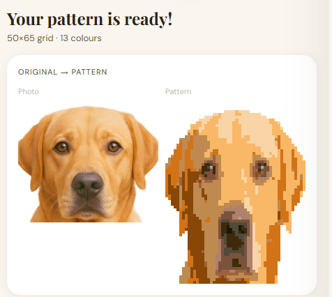NewUpload your photo Β· pick your style Β· download your pattern